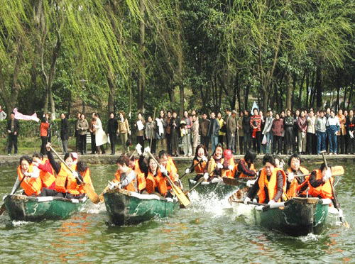 浙江大学工会日前举办庆“三八”女教工划船比赛。城市学院代表队表现出色,在三十多支参赛队中脱颖而出,勇夺第五名。(据浙江大学工会)
