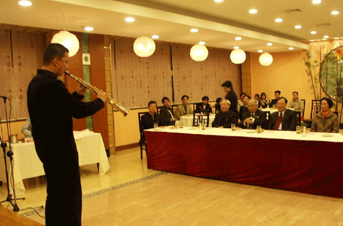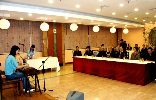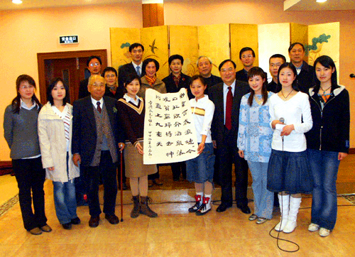 4月4日晚,查济民先生在出席“刘璧如国际交流基金”捐赠及颁奖仪式后,在城市学院北秀大酒店欣赏城市学院学生才艺表演。浙江大学党委书记张浚生陪同观看。