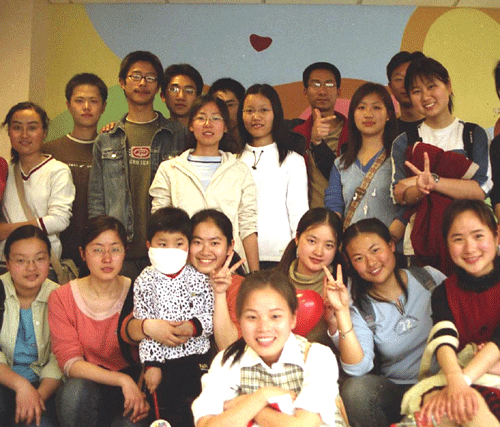 医院活动厅里,同学们与小病人围坐在一起,在和谐的气氛下,开始了互动活动。同学们先做自我介绍,然后轮番为小朋友表演节目,有唱儿歌的、跳三小天鹅舞的、扭秧歌的,还有为小朋友们讲故事的。节目中间还穿插着互动游戏,猜画、击鼓传鼠等等。活动最后,同学们把亲手制作的卡片送到每一个小病人手上,小病人们拿到卡片之后都非常开心,专注地看着卡片上的图案,还举得高高的让爸爸妈妈看。